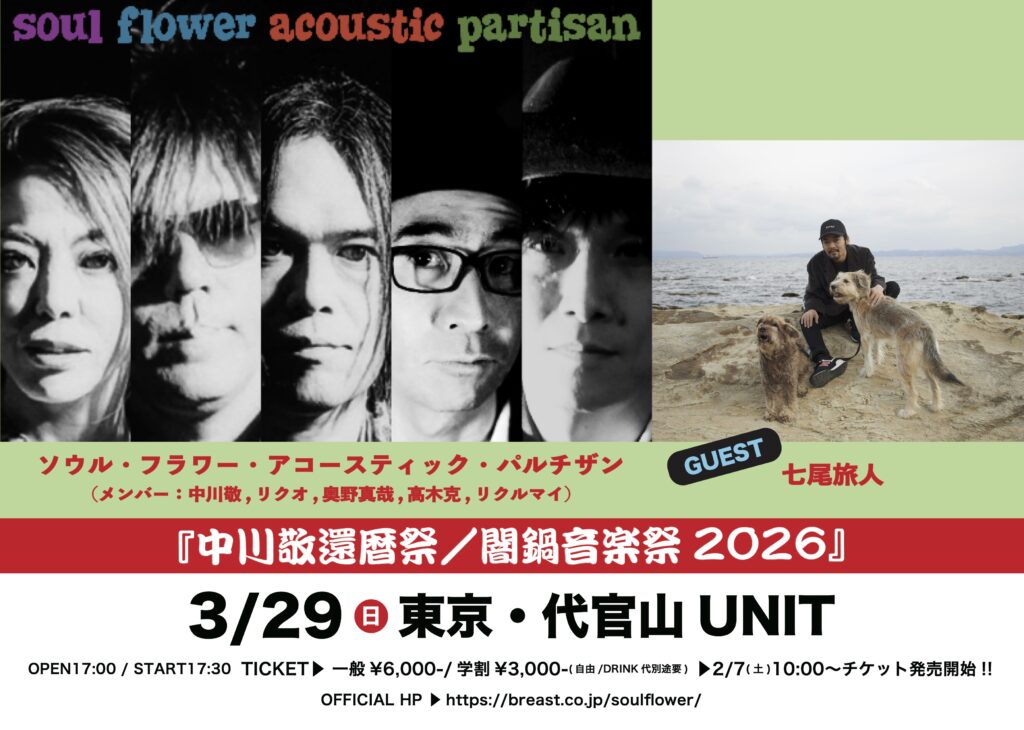 2026年3月29日 (日) 代官山UNITで開催『中川敬還暦祭/闇鍋音楽祭2026』のゲストが決定!